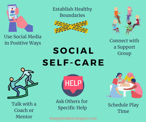 Social self-care refers to the actions that individuals take to maintain their social well-being. Social well-being is often associated with having a sense of belonging, connection and support from others. Some examples of social self-care include: